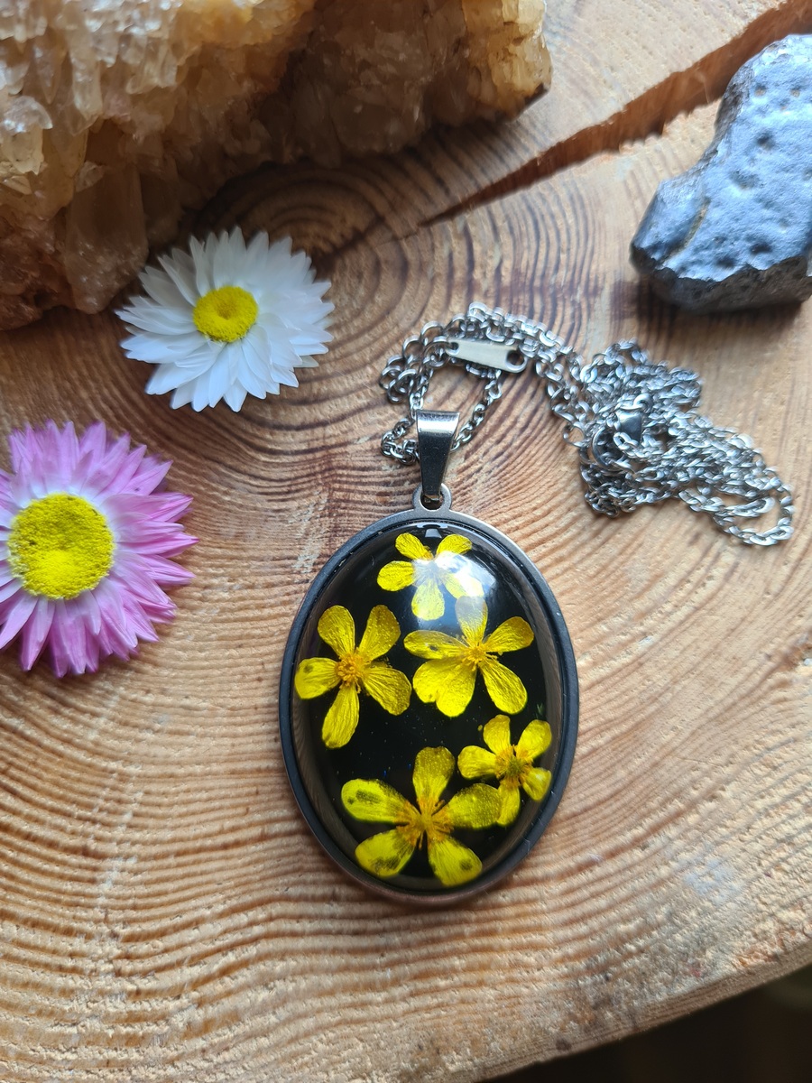 Ta wyjątkowa zawieszka z żywicy o wymiarach 4 x 3 cm to małe dzieło sztuki, które łączy w sobie piękno natury i minimalistyczną elegancję. W jej wnętrzu kryje się starannie zakomponowany element natury – prawdziwy kwiat jaskra.