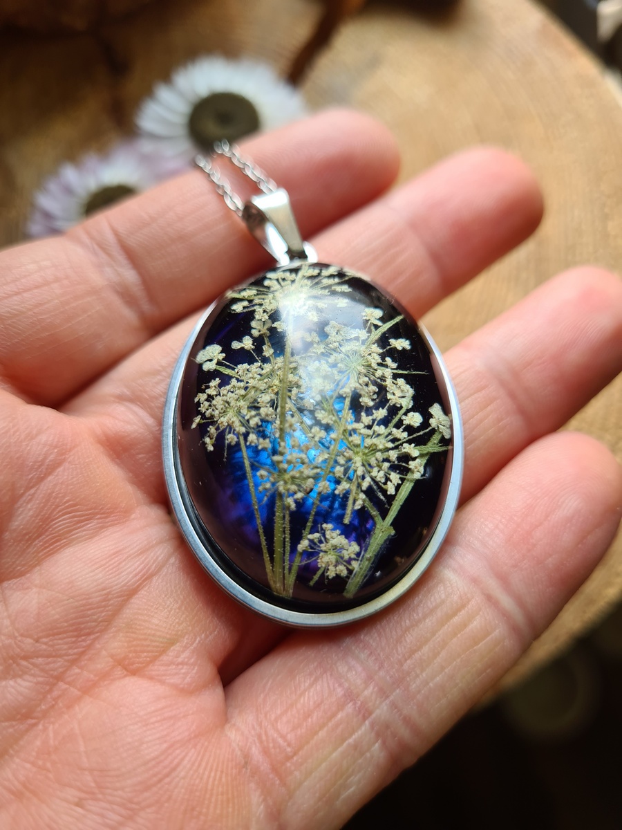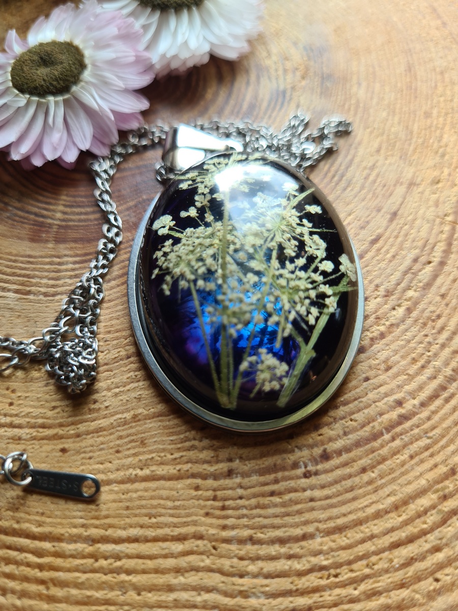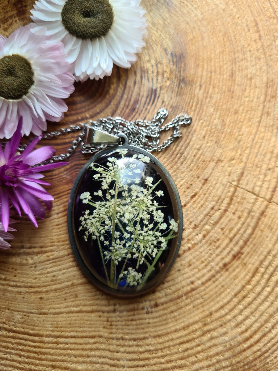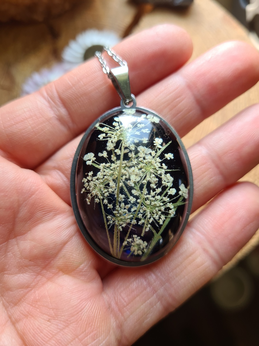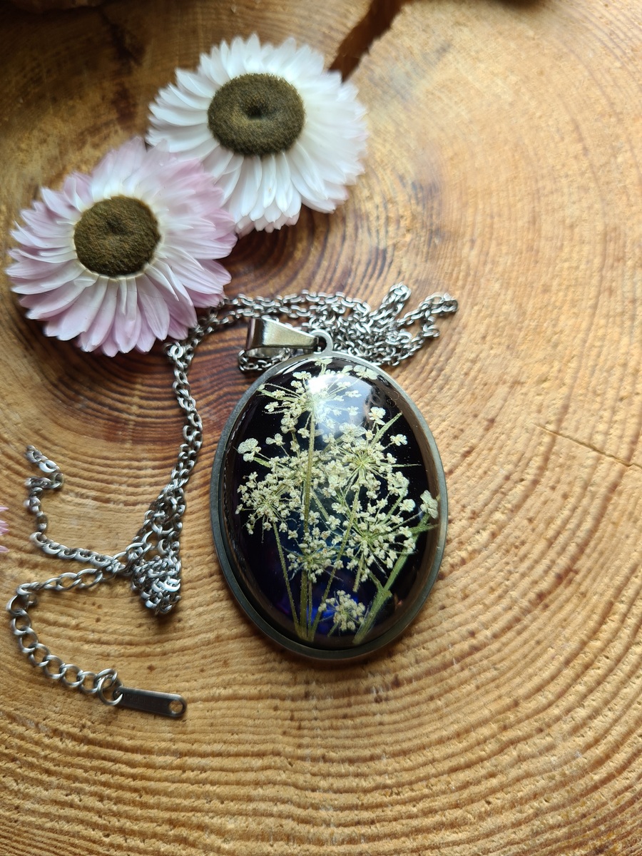Zawieszka z żywicy z kwiatem dzikiej marchewki