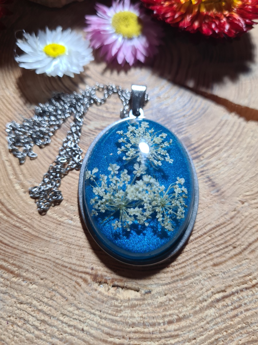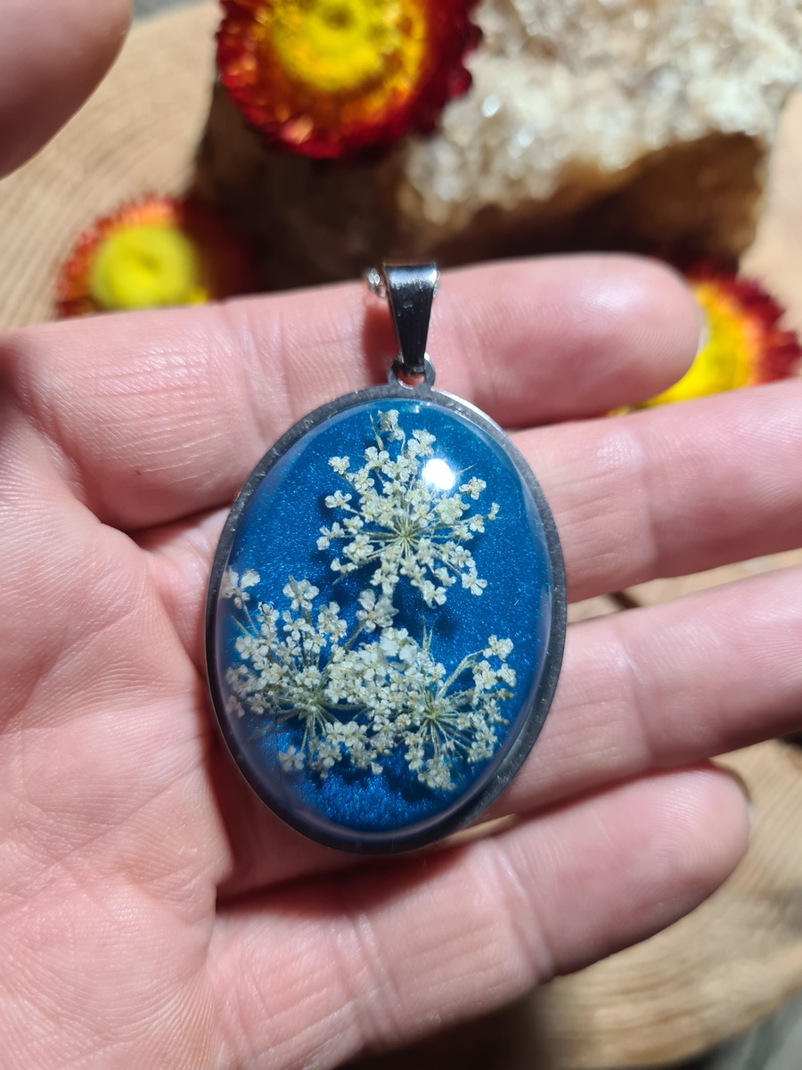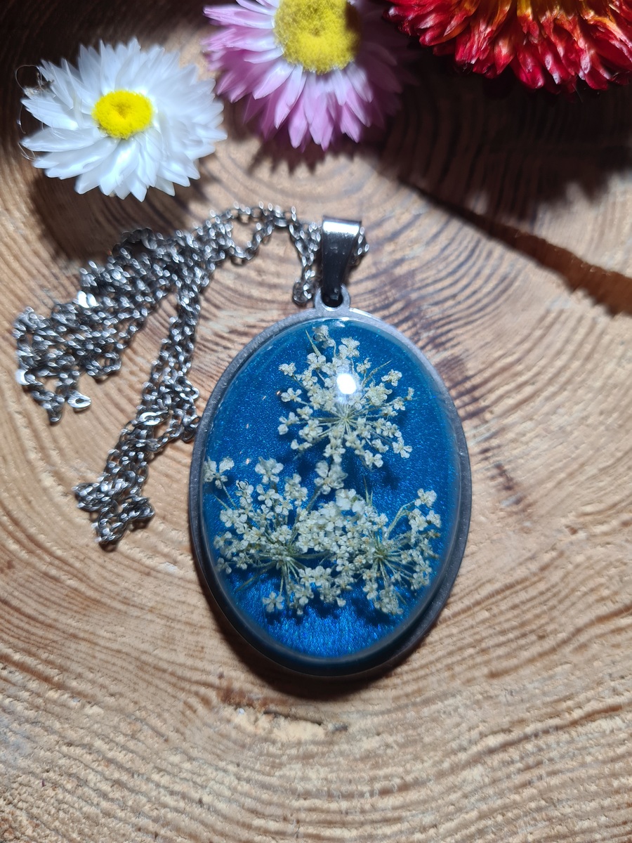 Zawieszka z żywicy z kwiatem dzikiej marchewki