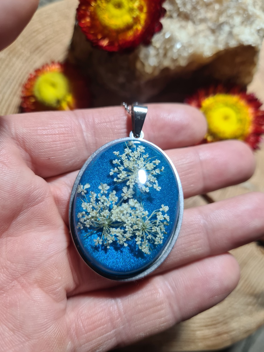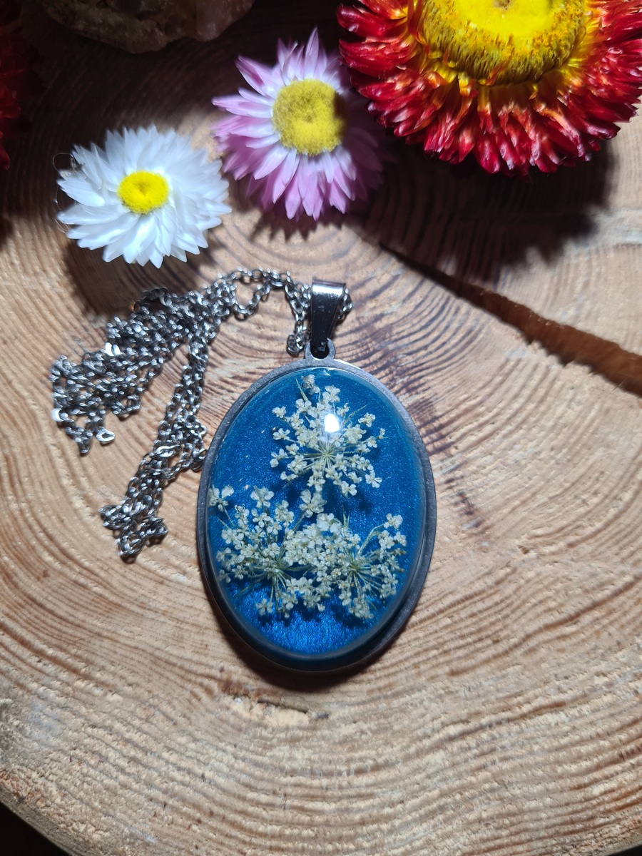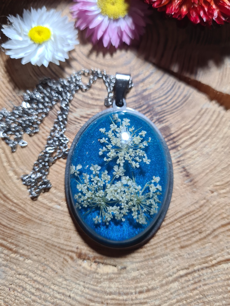 Zawieszka z żywicy z kwiatem dzikiej marchewki