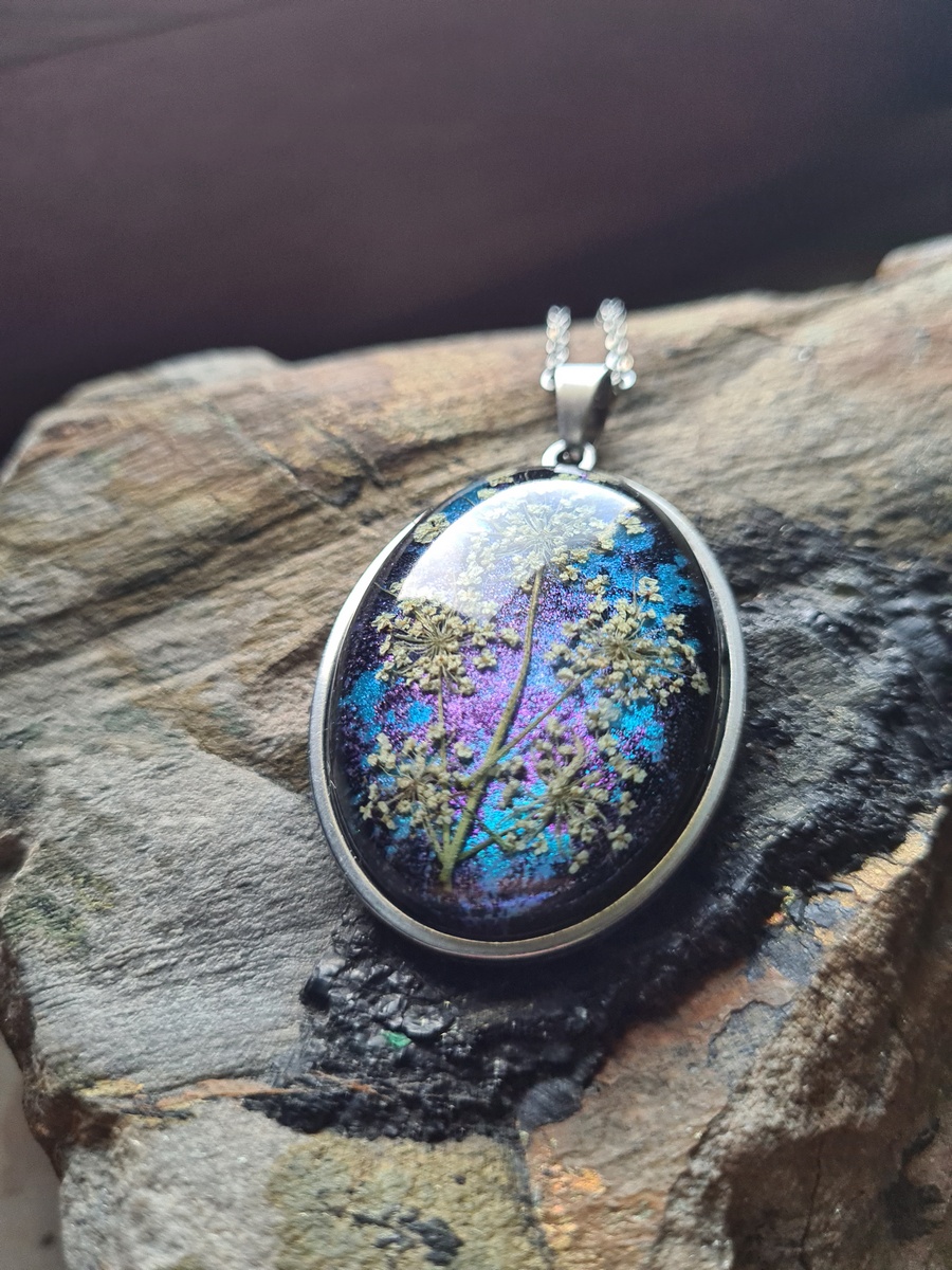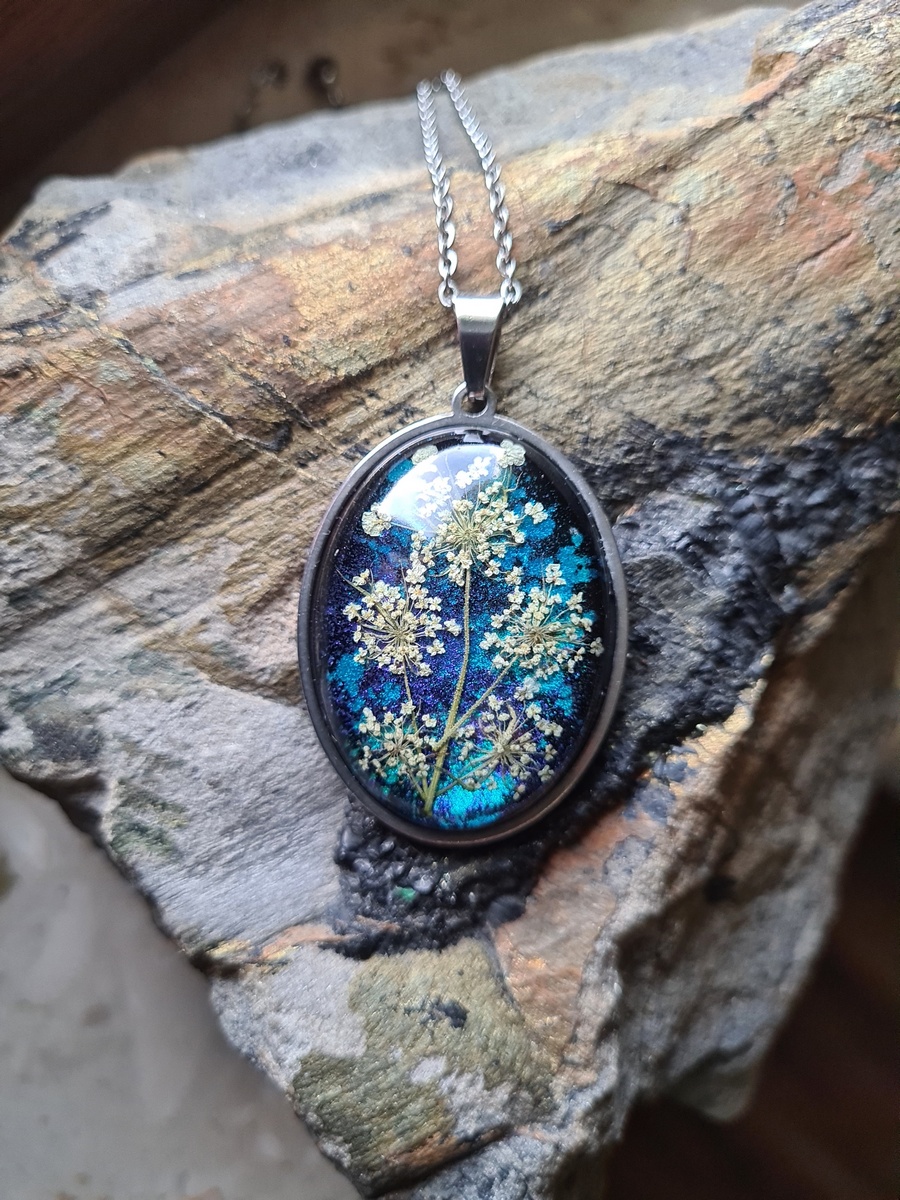 Zawieszka z żywicy z kwiatem dzikiej marchewki