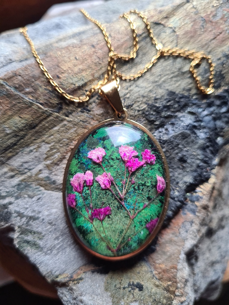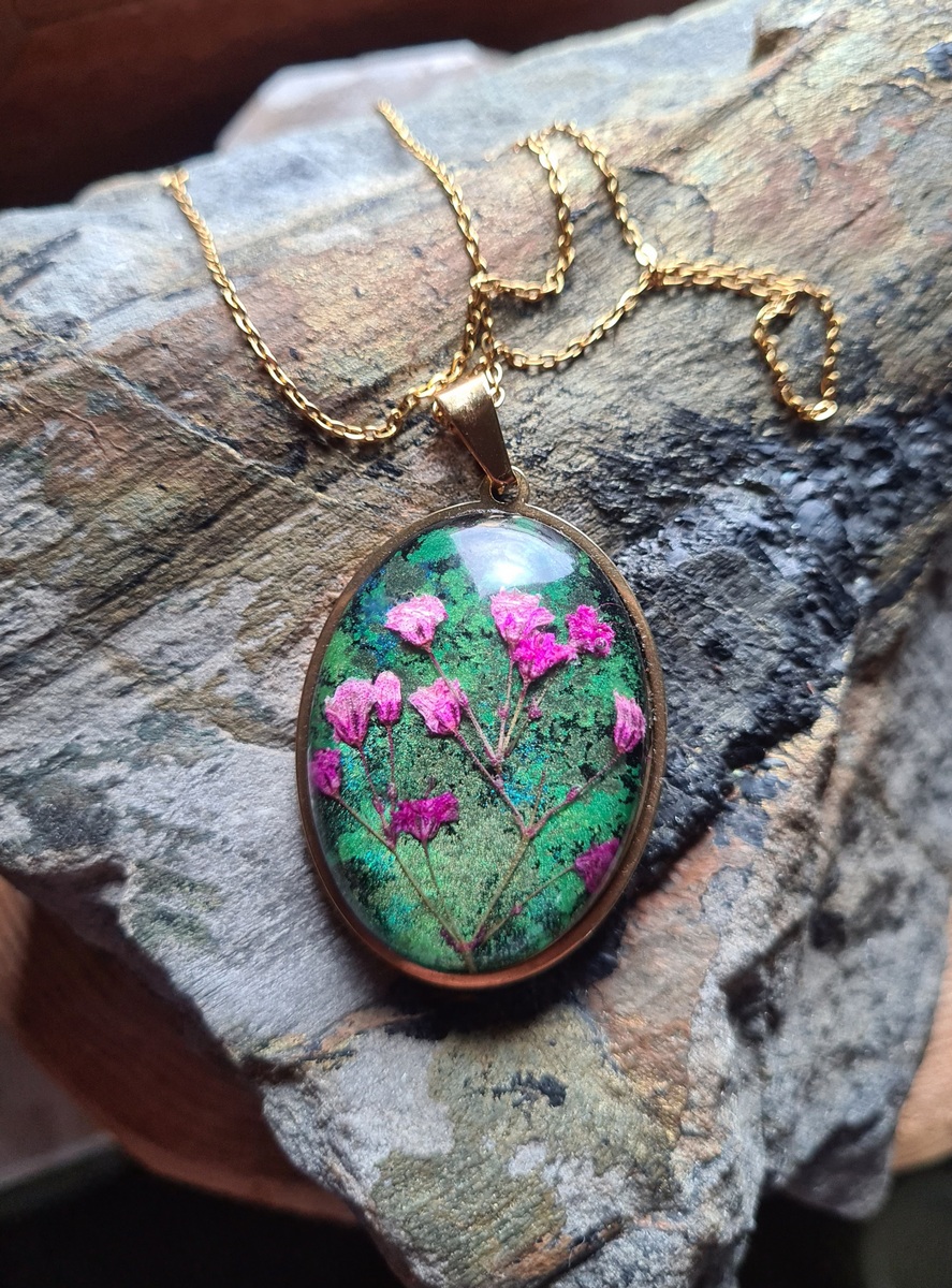 Ta wyjątkowa zawieszka z żywicy o wymiarach 4 x 3 cm to małe dzieło sztuki, które łączy w sobie piękno natury i minimalistyczną elegancję. W jej wnętrzu kryje się starannie zakomponowany element natury – prawdziwy kwiat gipsówki