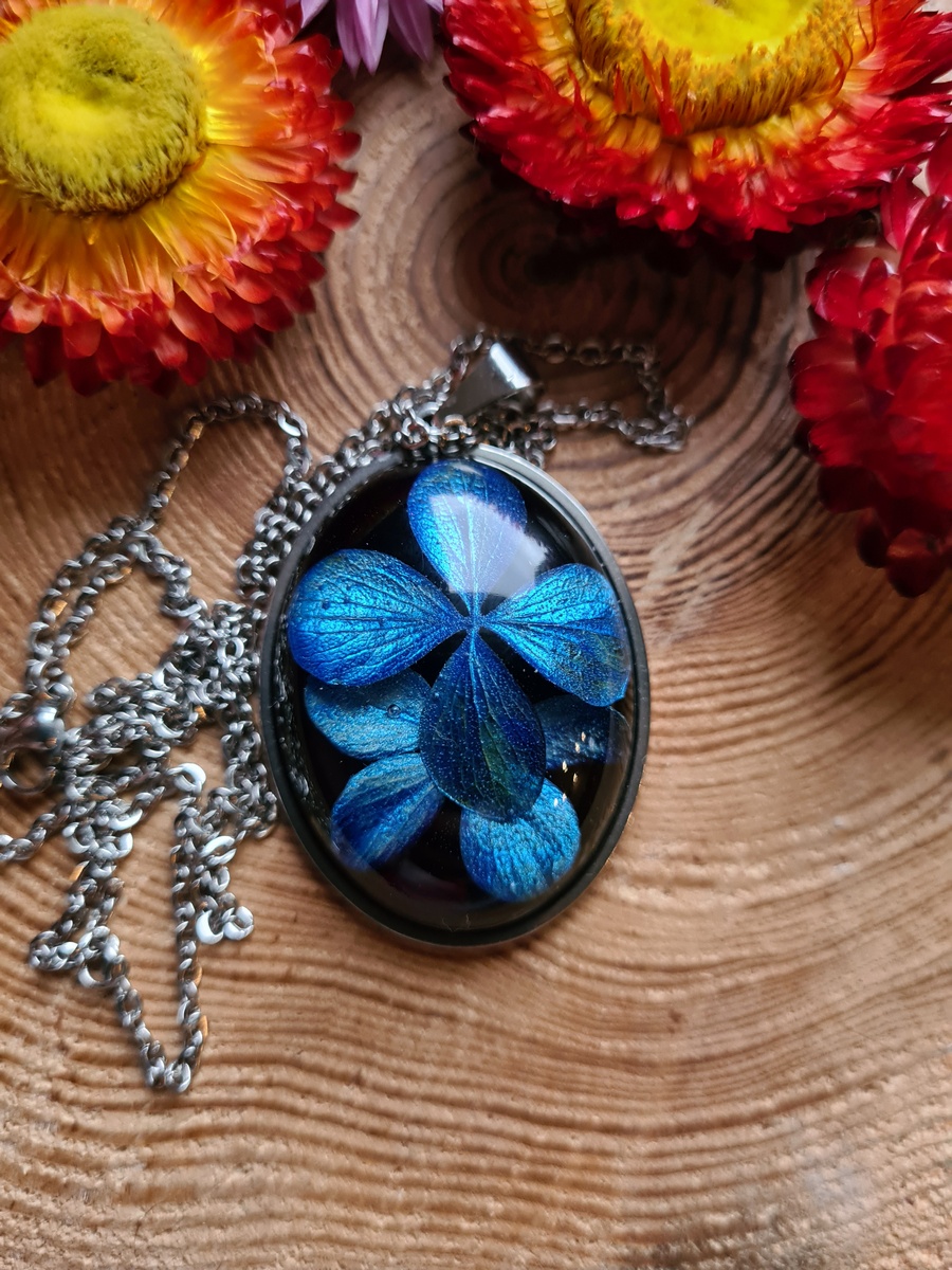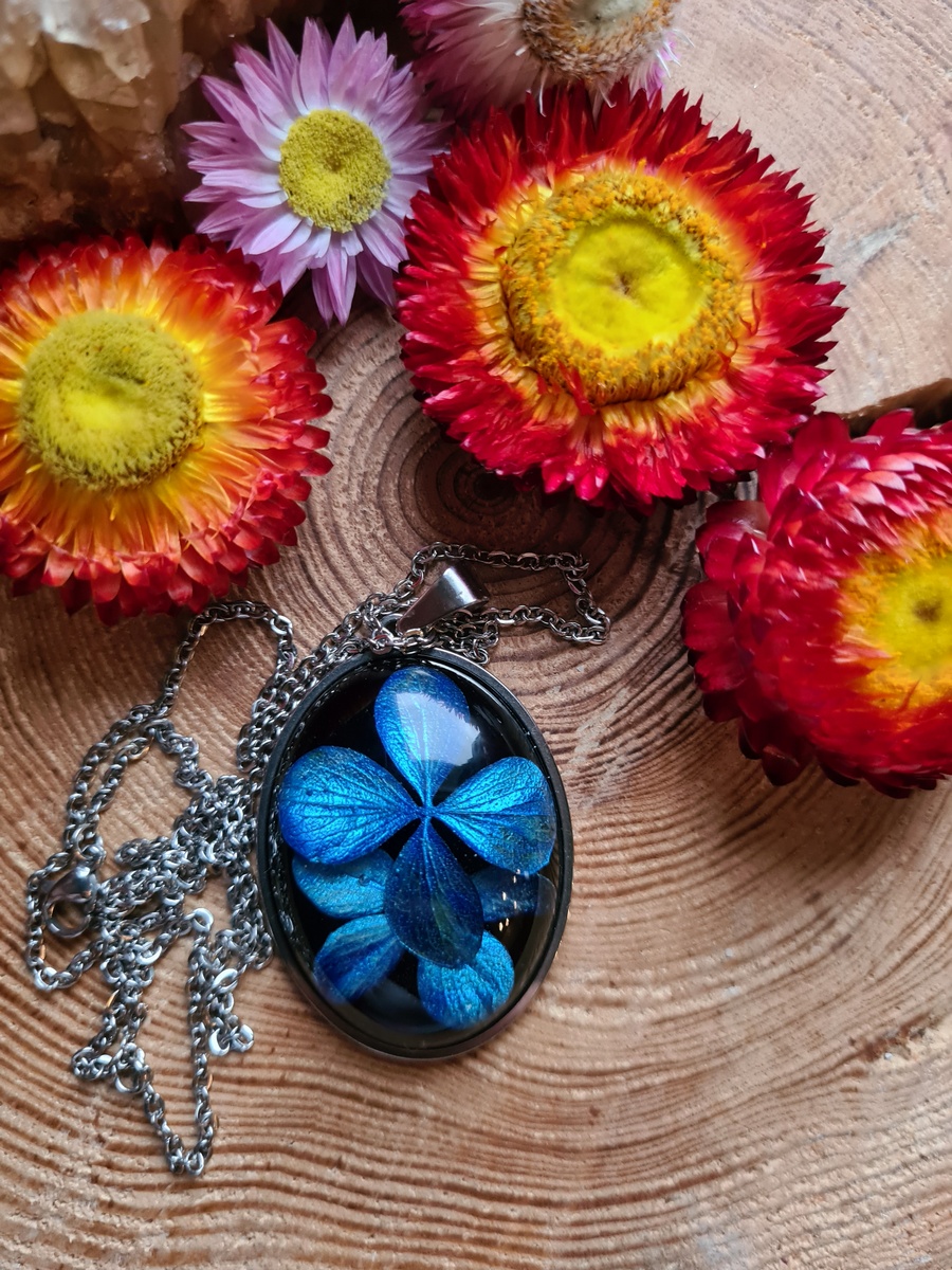 Ta wyjątkowa zawieszka z żywicy o wymiarach 4 x 3 cm to małe dzieło sztuki, które łączy w sobie piękno natury i minimalistyczną elegancję. W jej wnętrzu kryje się starannie zakomponowany element natury – prawdziwy kwiat hortensji.