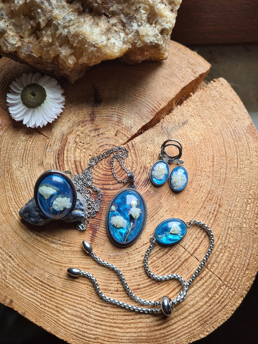 to małe dzieło sztuki, które łączy w sobie piękno natury i minimalistyczną elegancję. W jej wnętrzu kryje się starannie zakomponowany element natury – prawdziwy kwiat gipsówki.