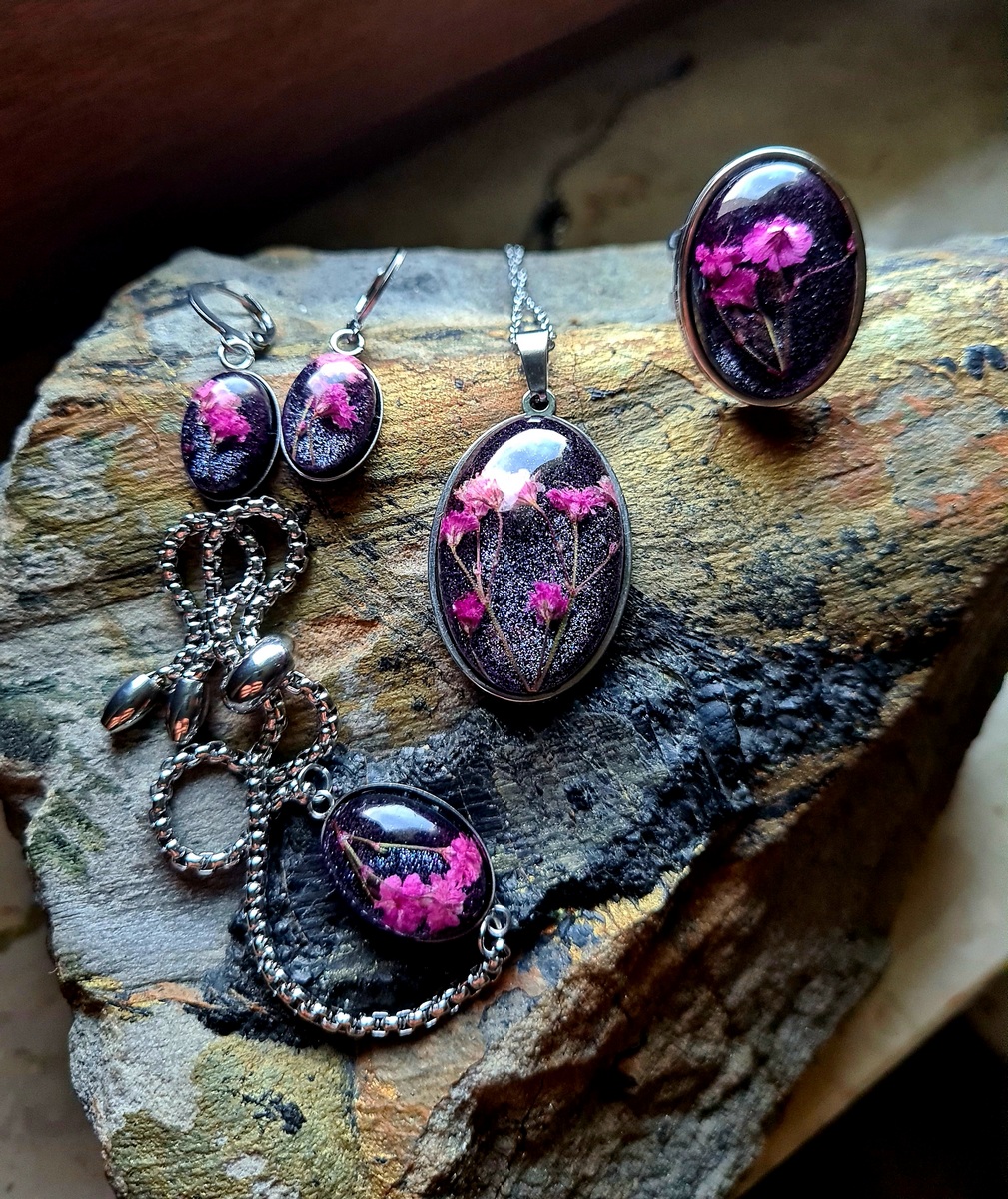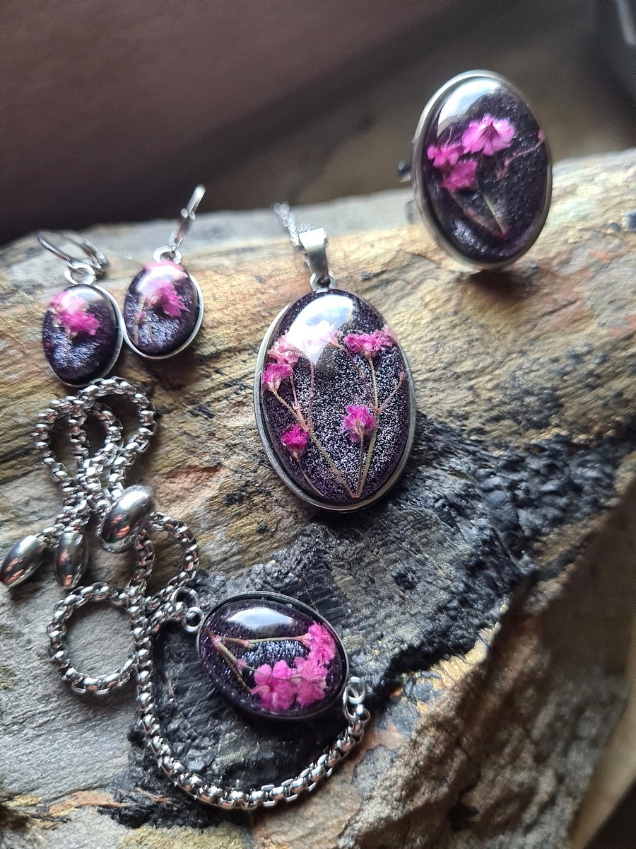 Zestaw biżuterii z gipsówką