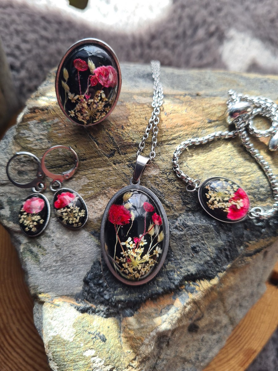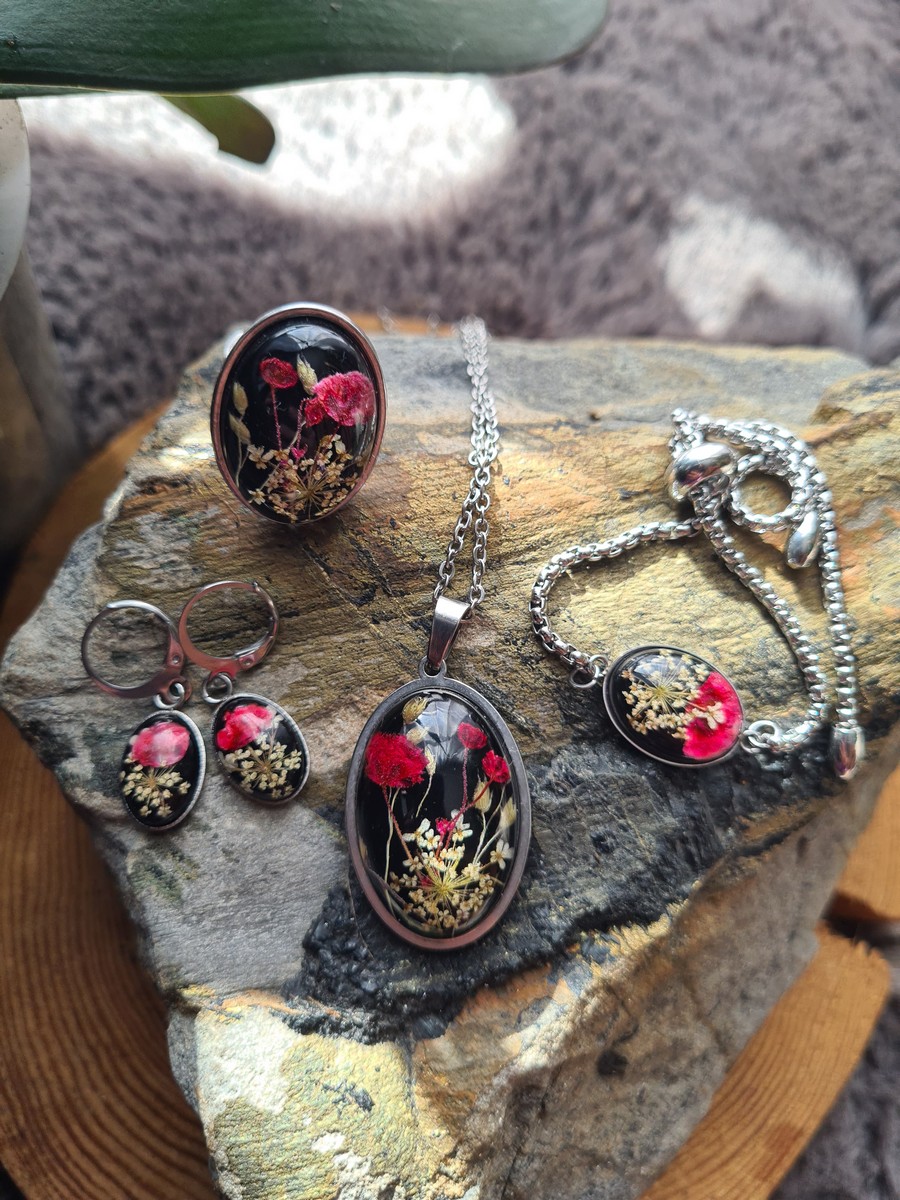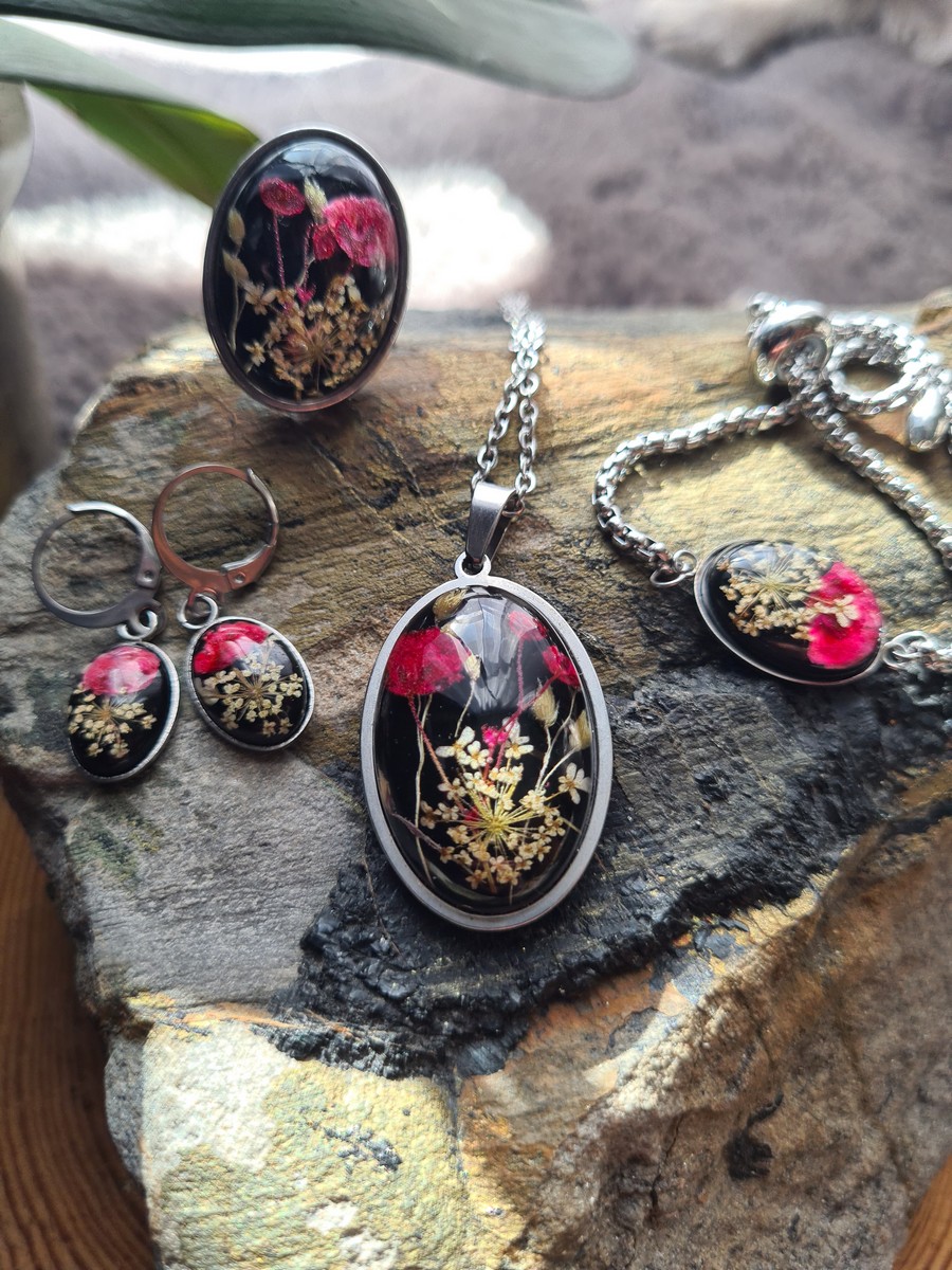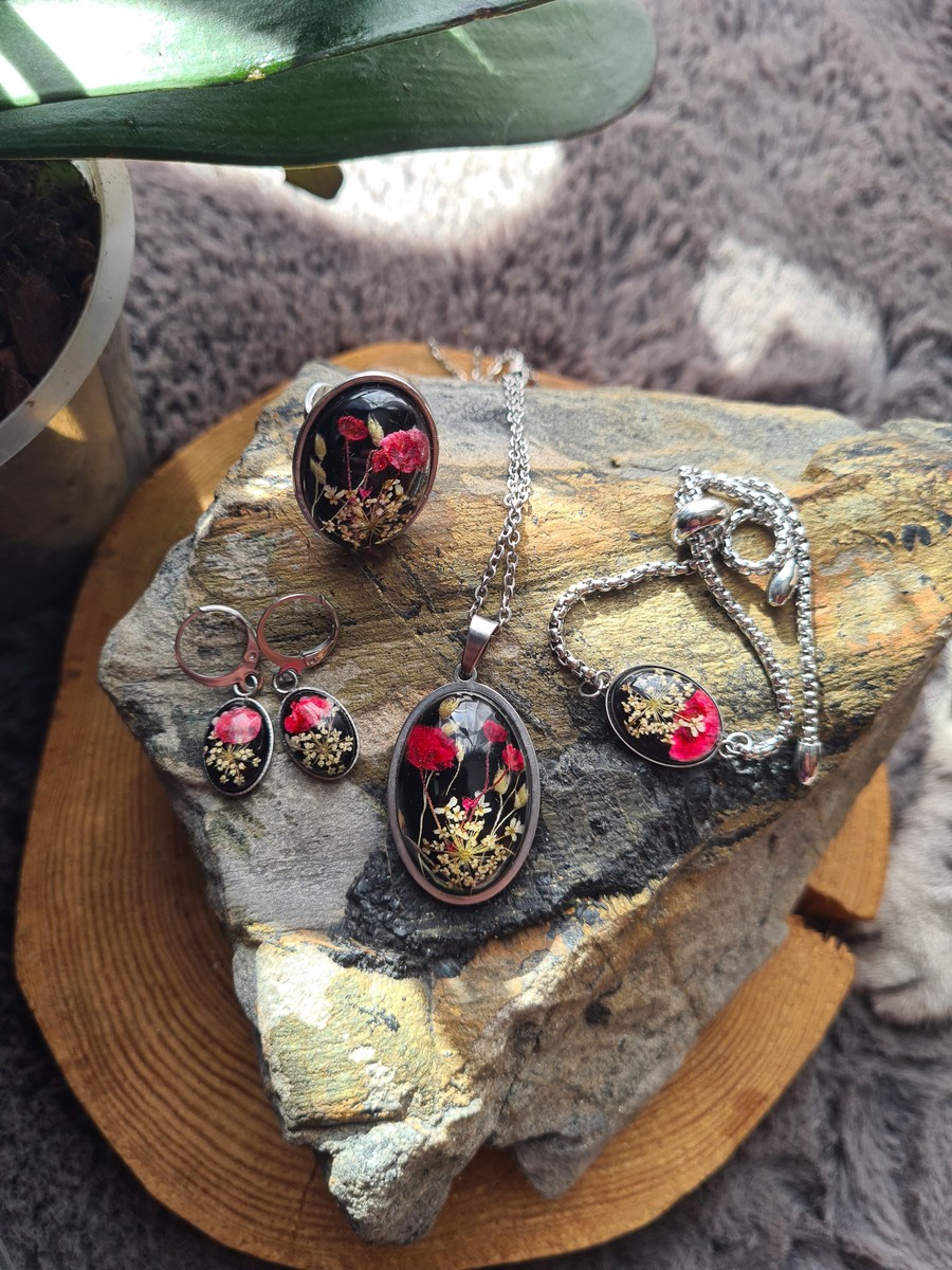 Zestaw biżuterii z gipsówką, dzika marchewką oraz prosem