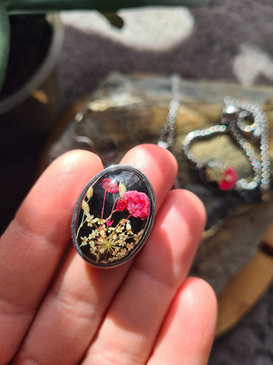 to małe dzieło sztuki, które łączy w sobie piękno natury i minimalistyczną elegancję. W jej wnętrzu kryje się starannie zakomponowany element natury – prawdziwy kwiat gipsówki , dzikiej marchewki oraz prosa.