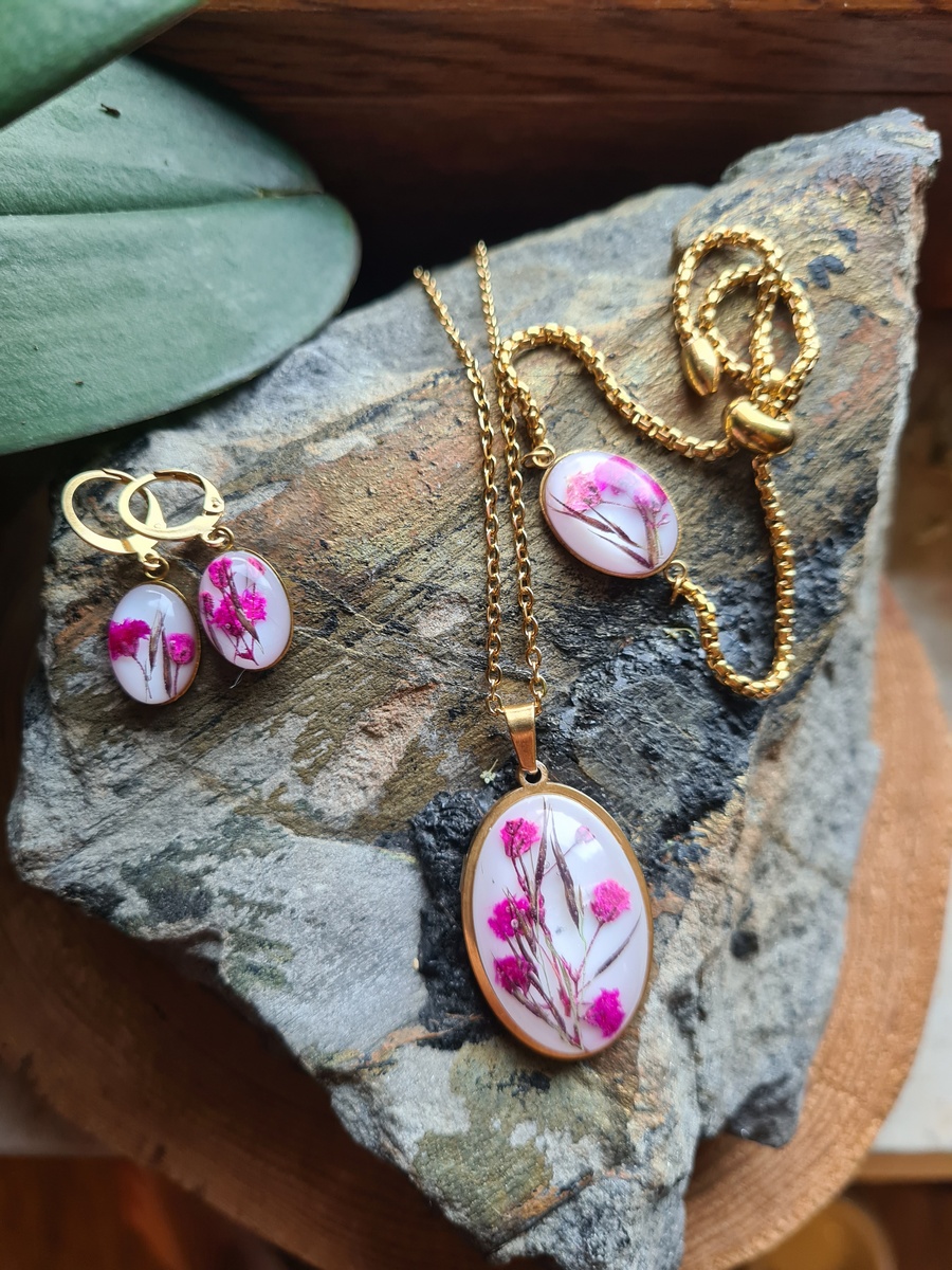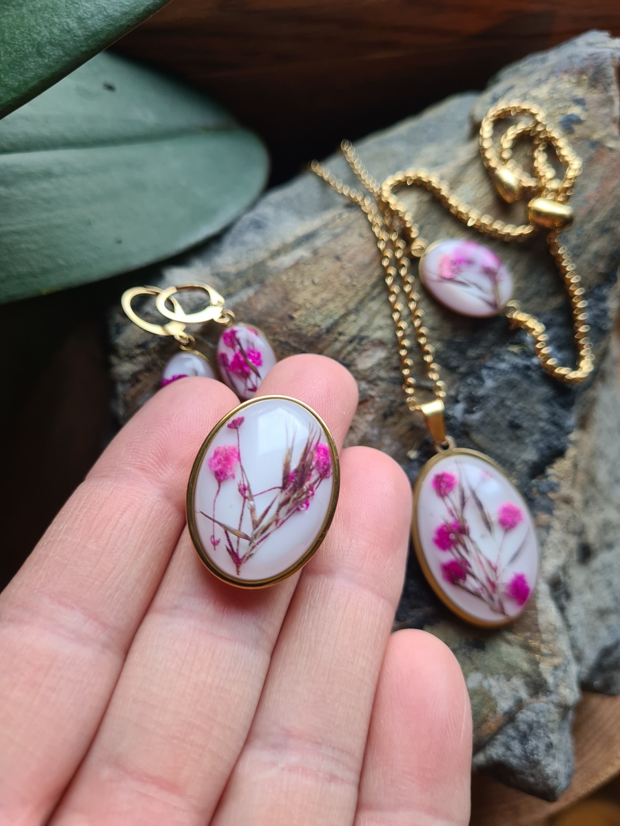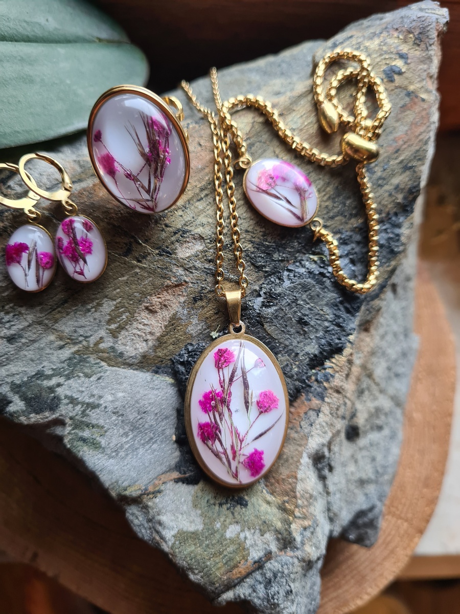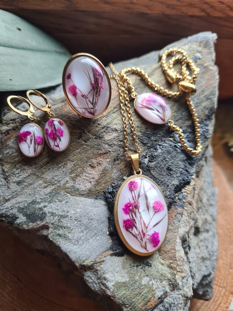 Zestaw biżuterii z gipsówką oraz trzciny pospolitej